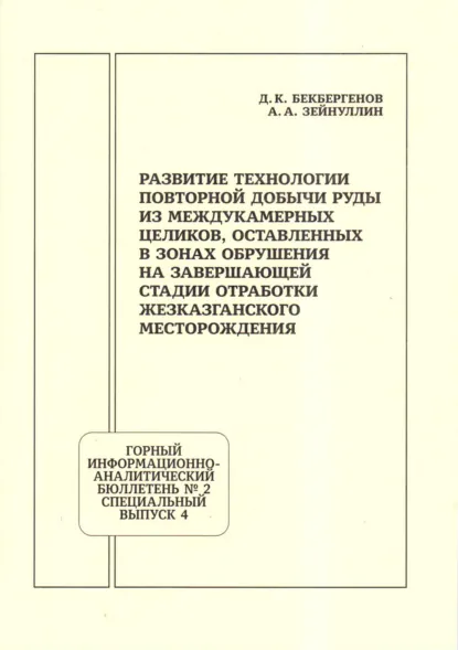 Развитие технологии повторной добычи руд из междукамерных целиков, оставленных в зонах обрушения на завершающей стадии отработки Жезказганского месторождения