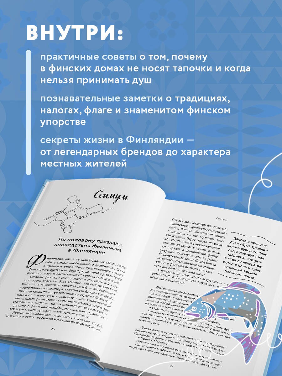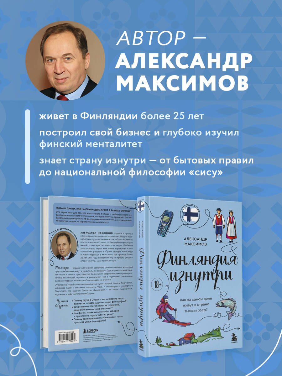 Финляндия — страна, где прозрачные озера отражают бескрайнее северное небо, а воздух пахнет свежестью, соснами и снегом. Хельсинки, Турку, Тампере — города, в которых старинные традиции соседствуют с современным дизайном и спокойным ритмом жизни. Здесь родились Nokia и Angry Birds, шоколад Fazer и молочные продукты Valio, лучшие ножи Fiskars и легендарные финские топоры. Но главное богатство Финляндии — ее люди: сдержанные, надежные, упрямо добивающиеся своего и по-настоящему свободные.