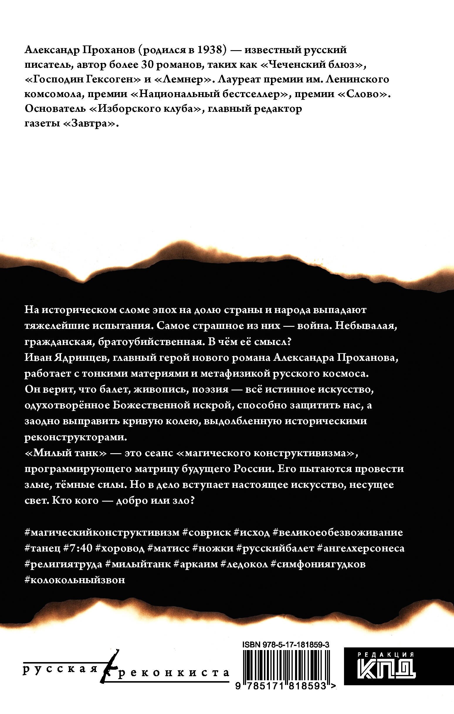 Иван Ядринцев, главный герой нового романа Александра Проханова, работает с тонкими материями и метафизикой русского космоса. Он верит, что балет, живопись, поэзия — всё истинное искусство, одухотворённое Божественной искрой, способно защитить нас, а заодно выправить кривую колею, выдолбленную историческими реконструкторами.