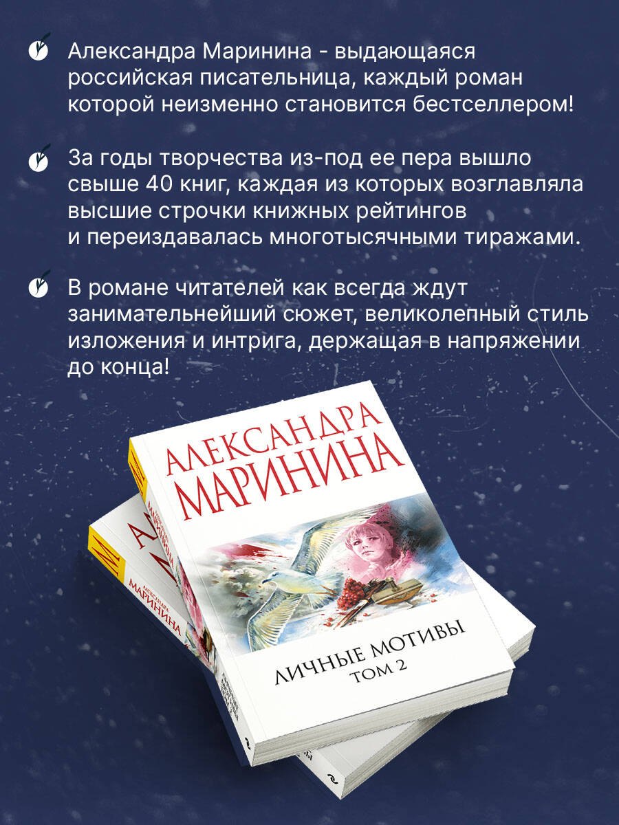 Довольно давно стали поговаривать, что Маринина исписалась. Долгие размышления героини на тему старости, неустроенности, всяких других "неудобных" в детективе моментов принимали за откровенную графоманию - мол, подавайте нам движухи, саспенса, чтобы стреляли, побольше жертв, сюжет закрученный и т.д. Тогда я не была согласна - не согласна и сейчас. Те книги (да отчасти и последние) для меня наполнены опытом, умудренностью женщины, повидавшей многое - а такой опыт бесценен. Смею подозревать, что Маринина многое и сама для себя решила, пока писала эти книги - ведь проблемы и вопросы, вставшие перед Настей Каменской, не чужды и ей самой: как женщине, как милиционеру, как писателю. К чему это я? К тому, что за всю историю книг о Каменской "Личные мотивы" стали первой, которая удовлетворила меня не до конца. Первой, к которой нашлись серьезные придирки: - слишком много фокальных персонажей. Кажется, Маринина рассказывала историю от десятка или больше людей, каждый - со своим именем, отчеством, фамилией, историей. К середине книги я в них полностью запуталась, и хотя в итоге разобралась, кто кому сын,мать, враг и друг, все-таки читать было тяжело. Возможно, стоило сократить количество фокала пусть даже в ущерб некоторым интересным сюжетным загогулинам; - сам сюжет. Уже с самого начала он, как бы сказать, довольно пресен - убили старика, который и так бы умер через месяц. Да, вызывает умиление упрямство его недалекой дочери, то, что она поехала в Москву и доставала беднягу Стасова - но все равно, когда на поверхность всплыла старая история, она ничего не всколыхнула в душе. Ну просто ничего. Печальный несчастный случай, из-за которого потом добили умирающего старика. - слишком много фокальных персонажей не вызывают симпатии. За них не волнуешься, они даже начинают раздражать, если им уделяют много места. И пожилые супруги, и дочь погибшего, и еще несколько человек - ну просто не симпатичны и все. Появляется ощущение, что их втиснули, чтобы место занять. В качестве плюса стоит отметить нюх, который Каменской никогда не изменяет и то, как трогательно муж пытается научить ее "жить на пенсии" - моменты их совместного отдыха показались мне самым реальным, что есть во всей книге.