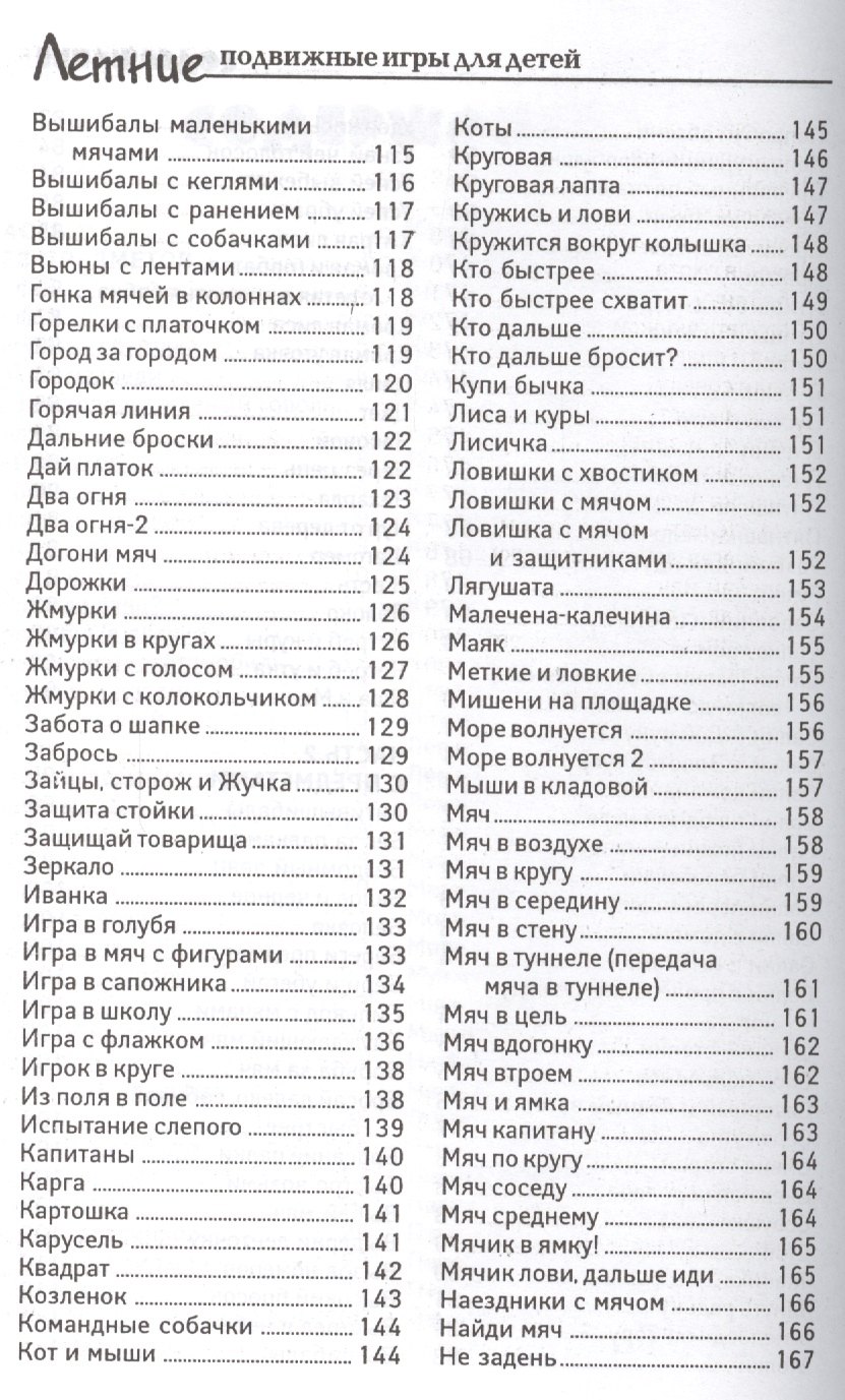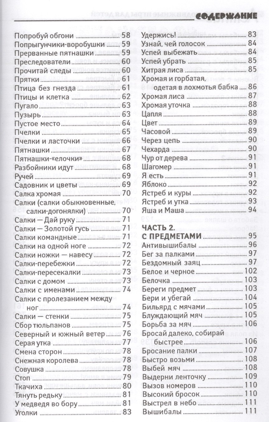 .Подвижные игры в данной книге разбиты на два раздела -без предметов — когда для игры не требуется никакого особого инвентаря или серьезной подготовки, и с предметами — когда все наоборот — нужен специальный инвентарь (палки, мячики, повязки на глаза и т.п.) или некоторая подготовка площадки для игры. В своих разделах игры расположены в алфавитном порядке.