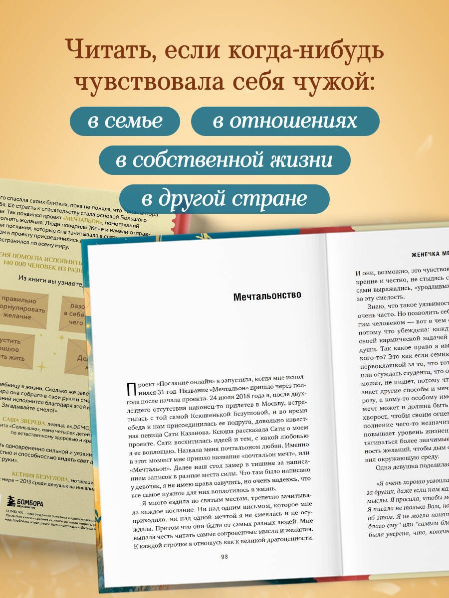 Книга очень замечательная и поучительная, читается взахлёб, невозможно оторваться! А самое главное Евгения в книге пишет как правильно загадывать желания! Мне очень понравилось!!!