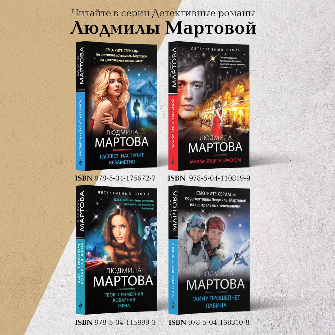 Людмила Мартова — мастер увлекательной детективной мелодрамы, автор захватывающих остросюжетных историй. Их отличает закрученная детективная интрига, лихой финал с неожиданной развязкой и, конечно же, яркая любовная линия. Героини романов Людмилы Мартовой — современные молодые женщины, которые точно знают, чего хотят от жизни.